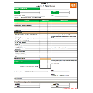 Formato ARQUEO DE CAJA EN TURNO TIENDA